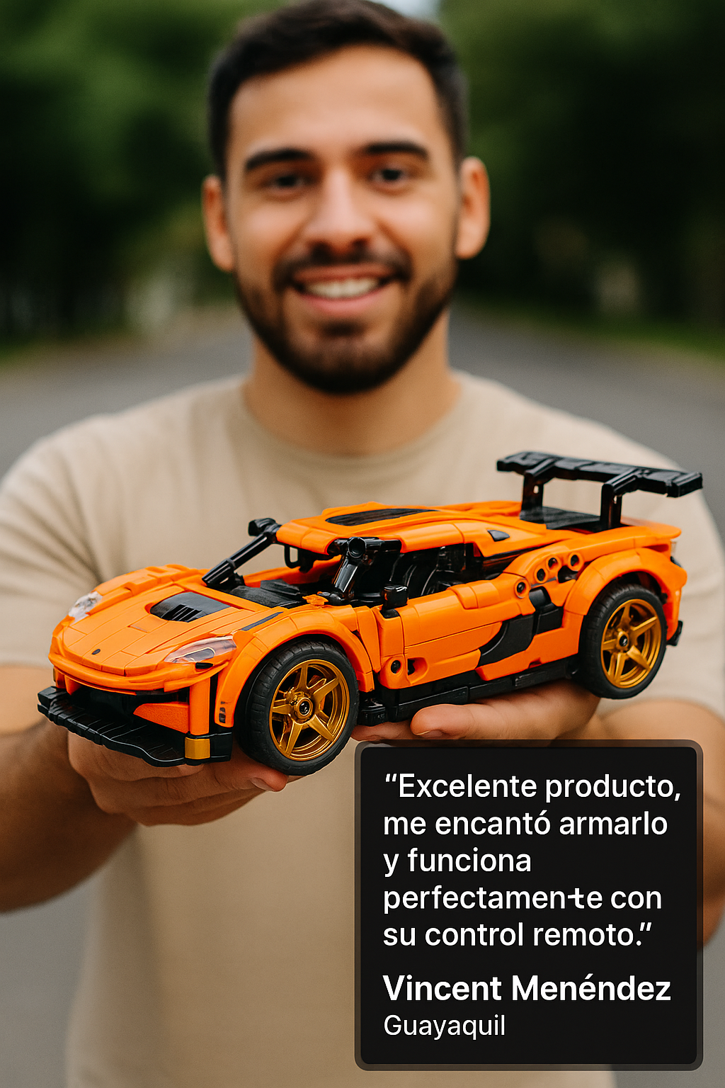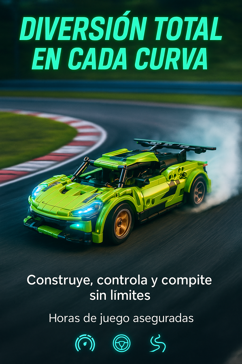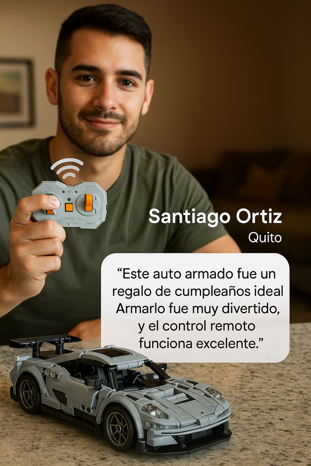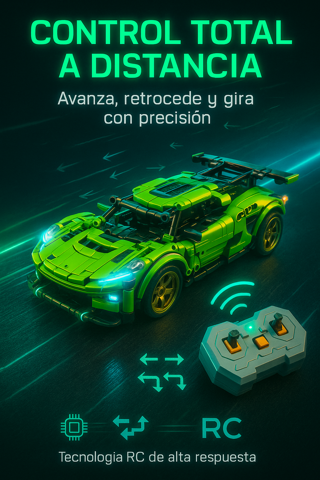 Un auto RC de bloques resistente y con diseño deportivo que combina tecnología, creatividad y velocidad.